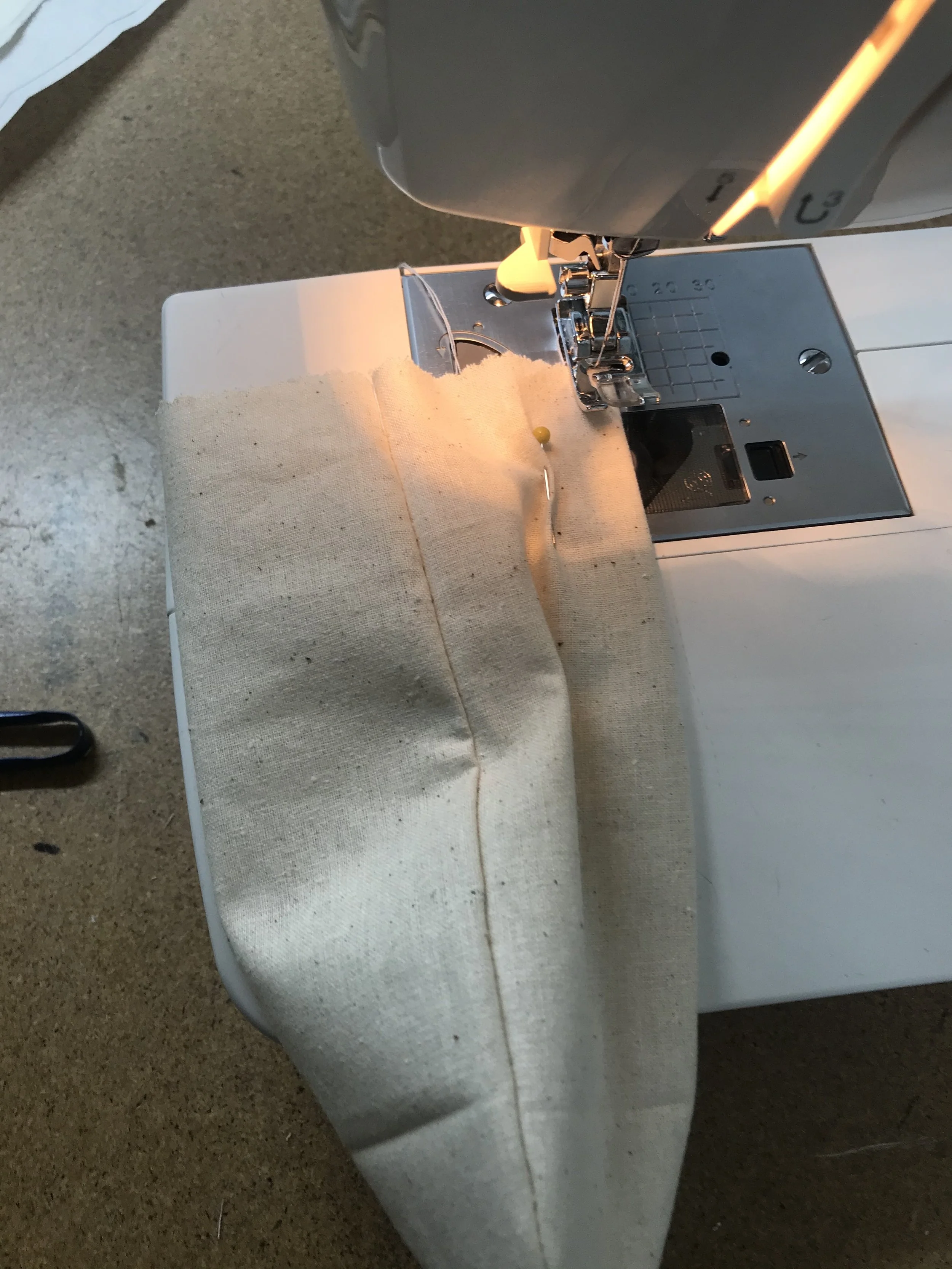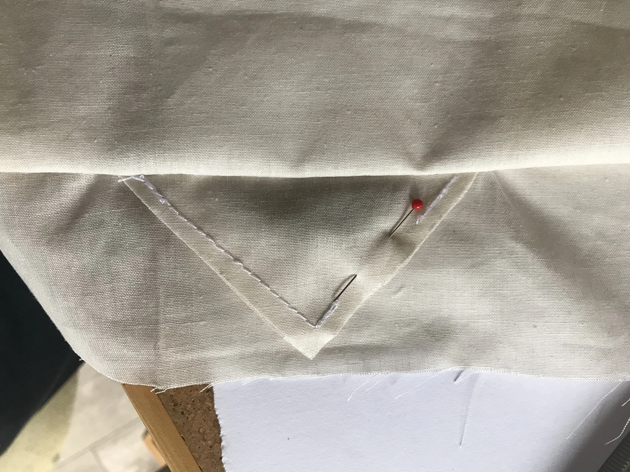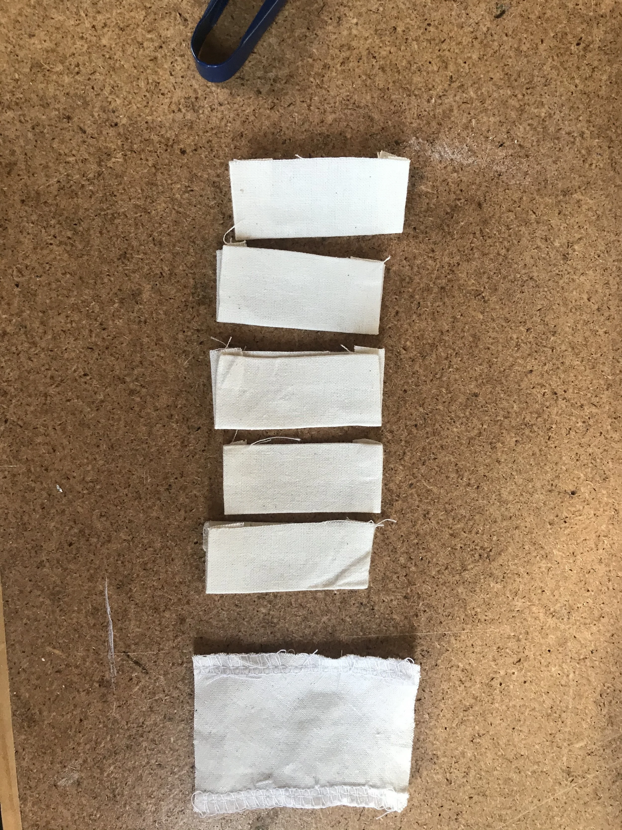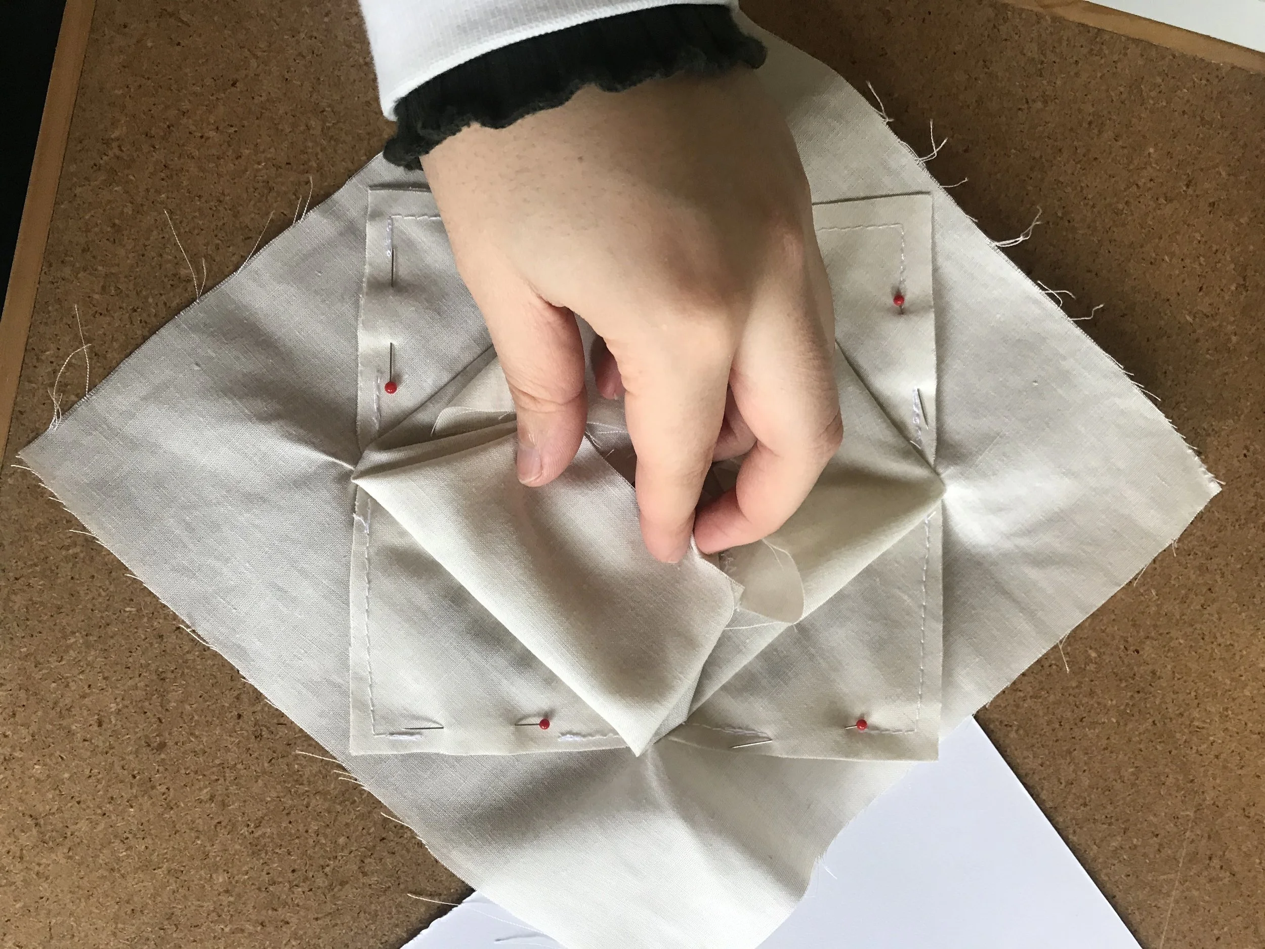 20 x 20cm square with pin ticked diagonals and stuffed with grass seedlings, ready to be closed and stuffed with mulch