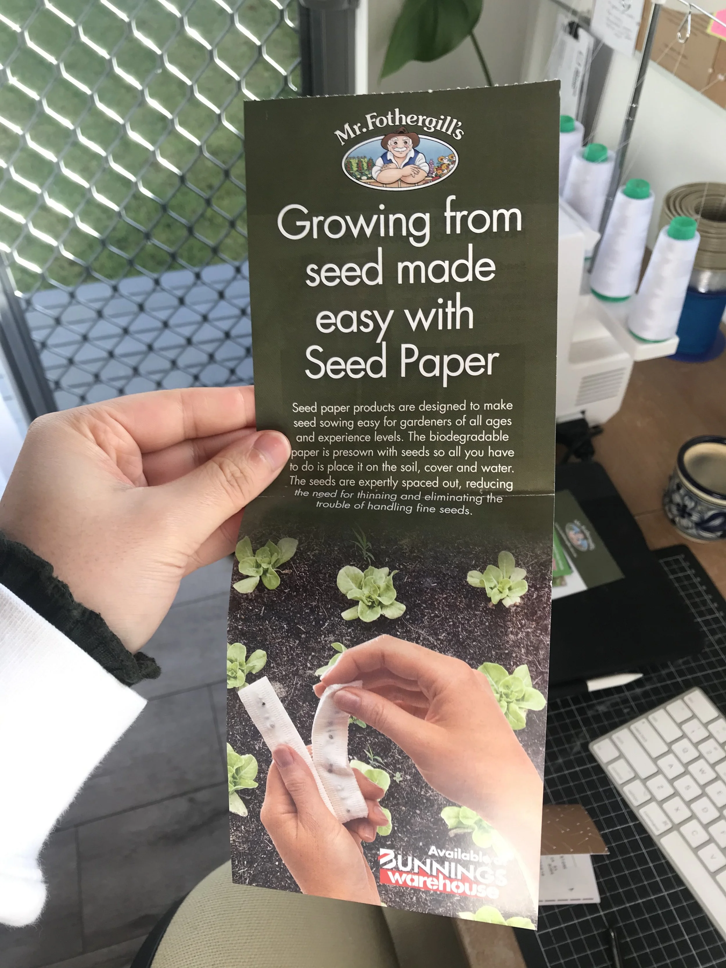 "seed paper" concept is reiterated by Bunnings pamphlet Seedlings are placed in this paper to assure the correct planting distance between seedlings for optimal growth