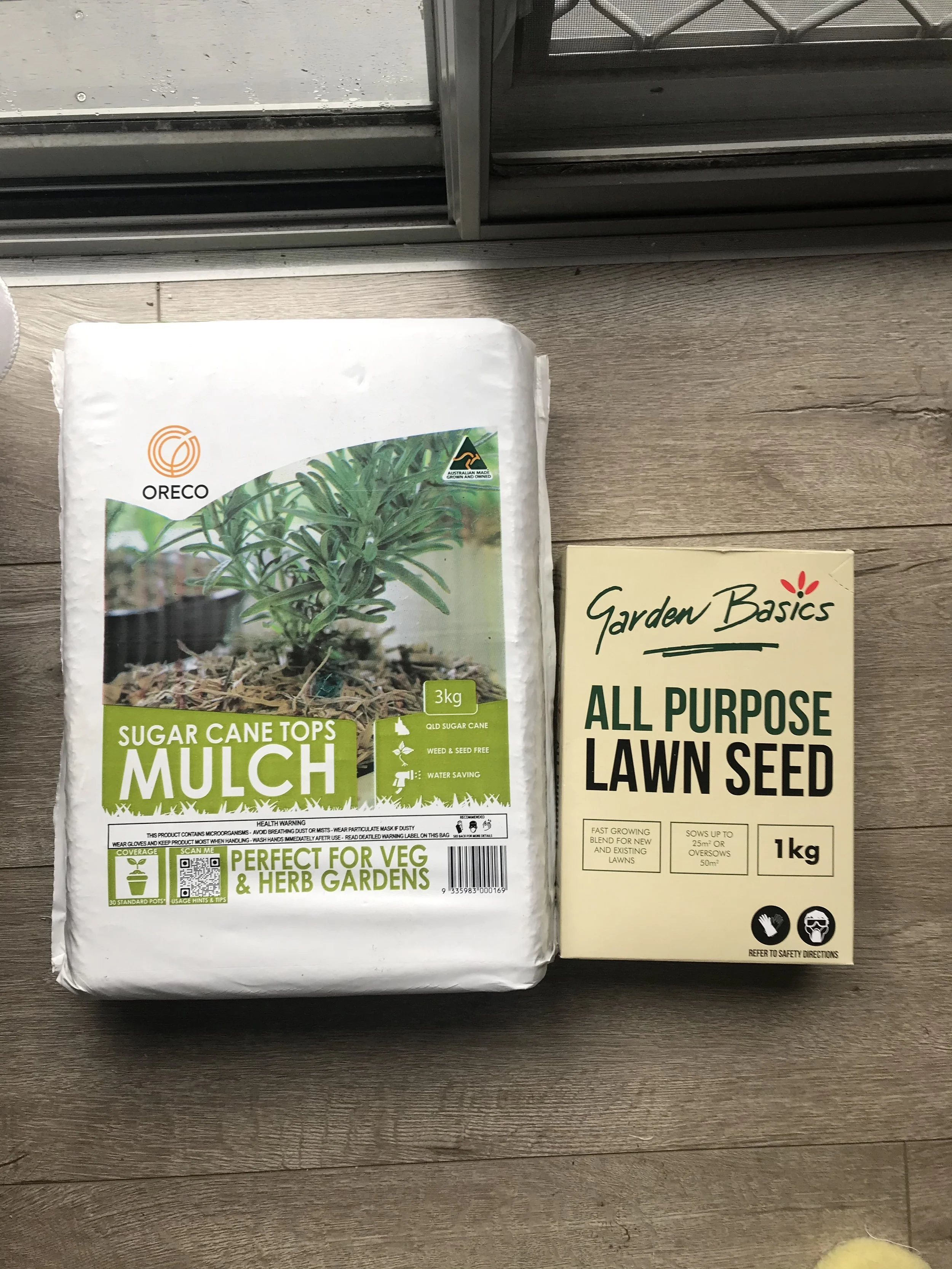 Mulch - Sugarcane to be used as wadding/ stuffing and moisture retention for seedling growth & All purpose lawn seeds
