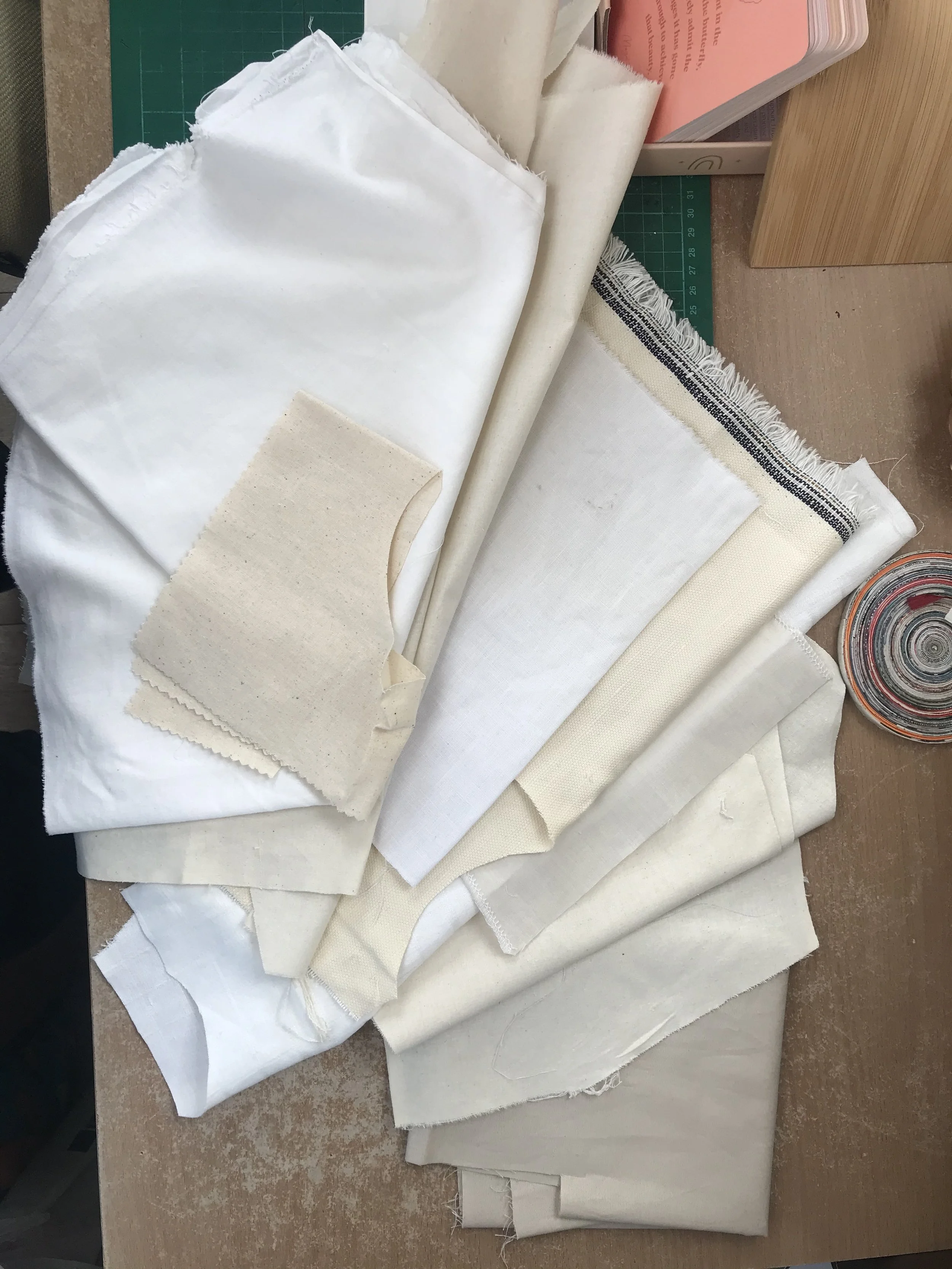 Left: Calico, Middle: plain cotton twill weave & basket weave detail, Right: Cotton Duck