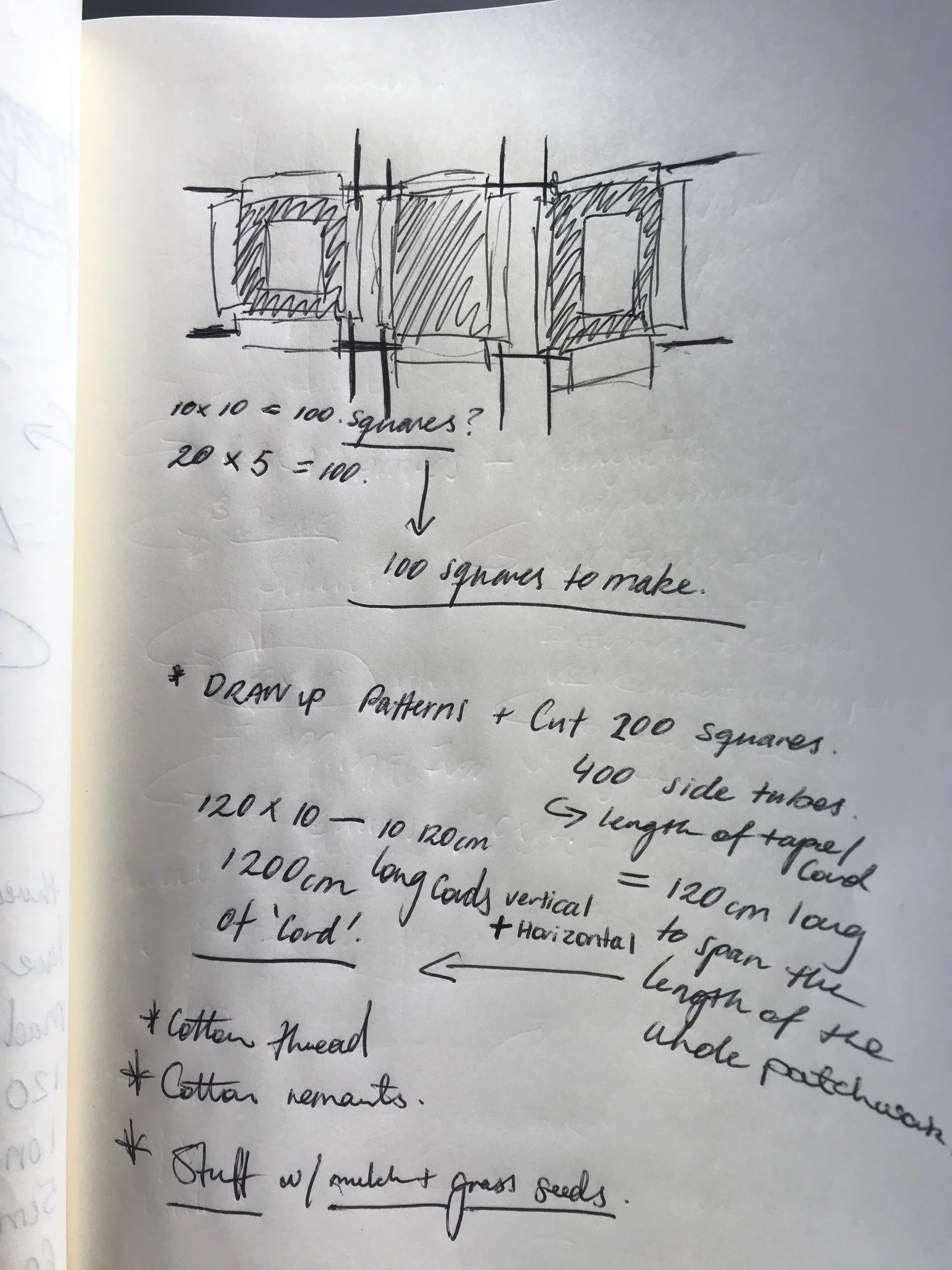 Further pattern making of the 20x20xm squares. The internal void will act as the pockets for the grass seedlings