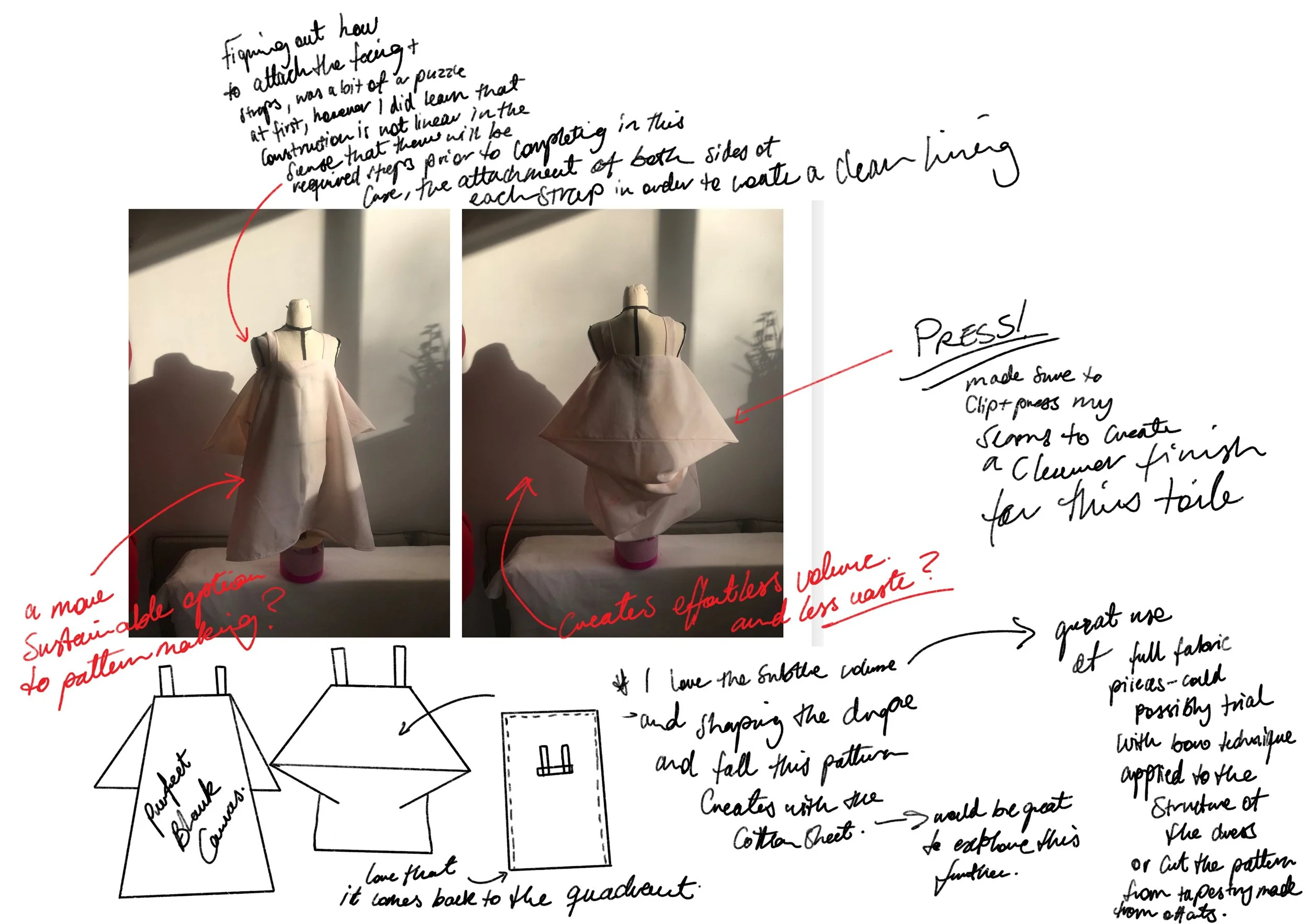 I believe that the cotton material used along with remnants and other fabric pieces I have from Savers, will uphold the ethical and sustainable question of materiality, as a natural fibre will break down at the end of life. However I do intend on experimenting and exploring further with volume and the environment, meaning that I will maintain a conscious mind on threads used (avoid any polyester threads) and experiment with pattern making along with filling - view my options and trial various ways of reusing materials and waste.