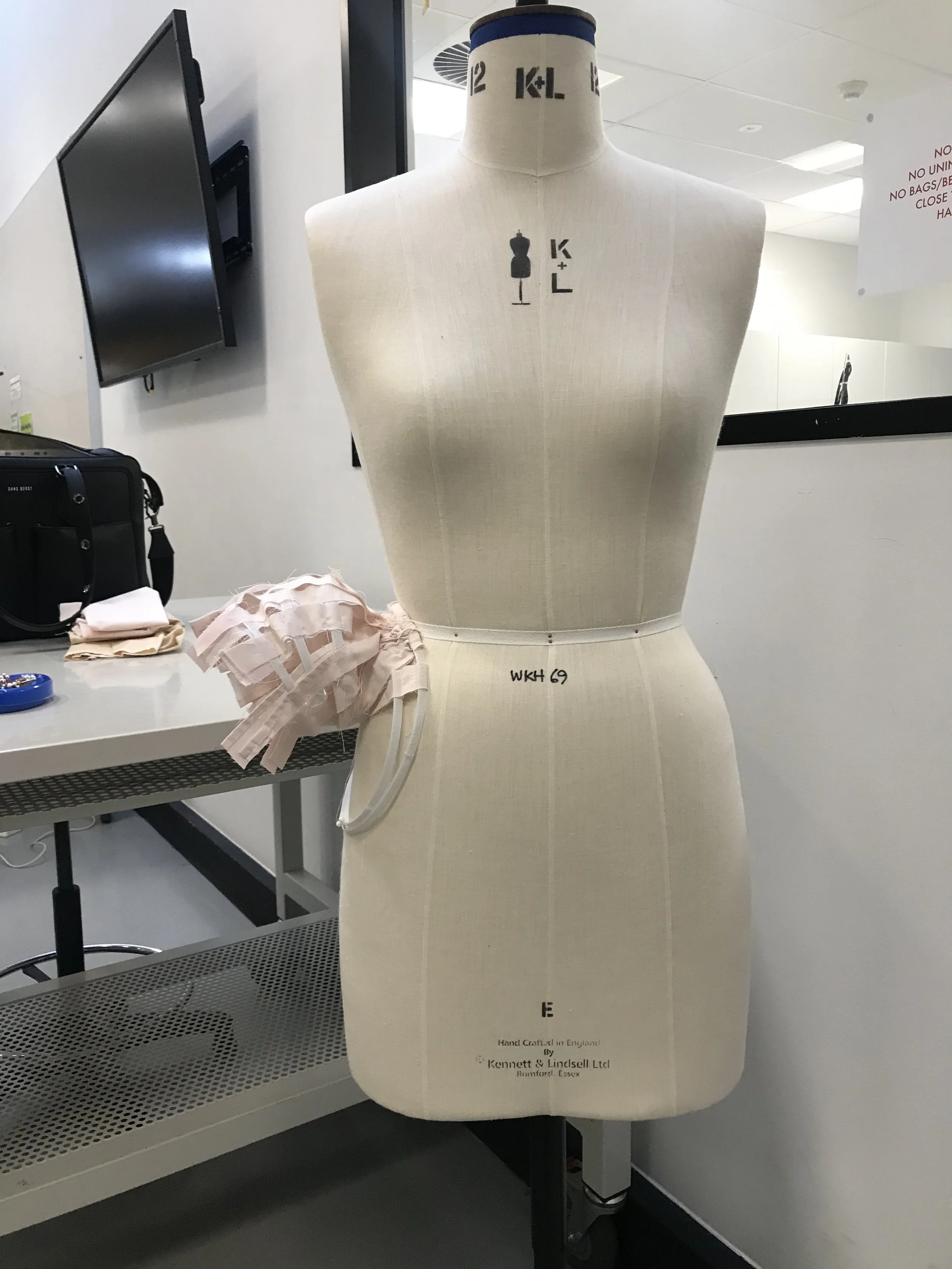 sample draped on the front of the bodice