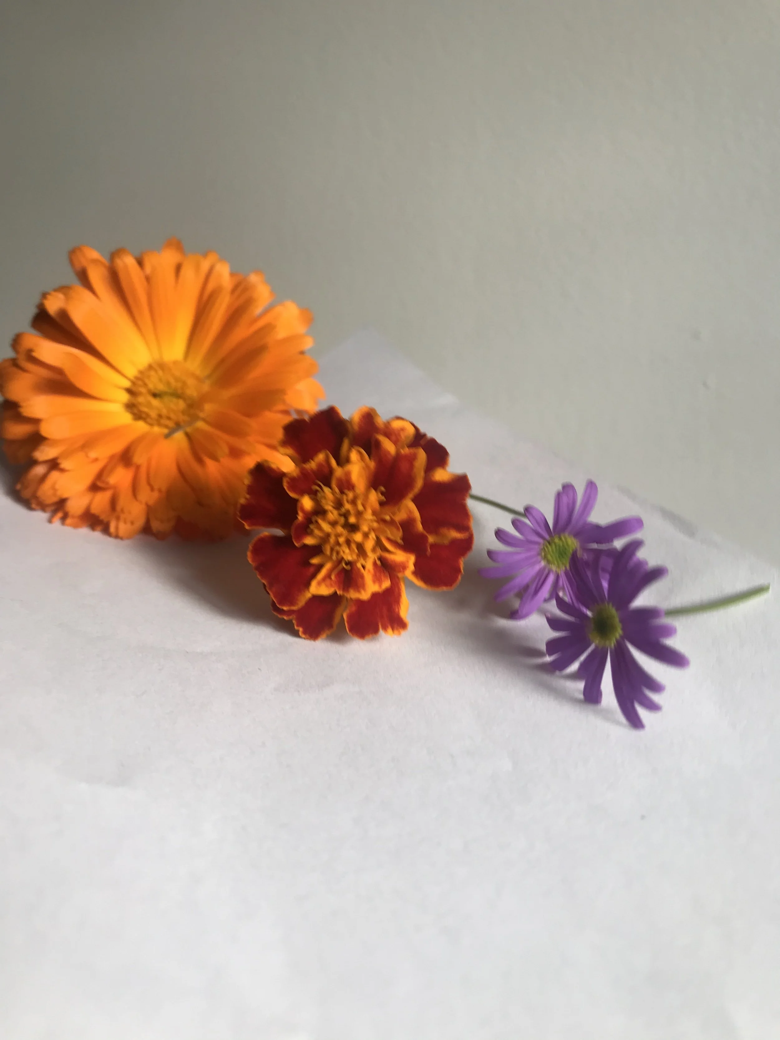Calendula and other flower selection from my mums backyard, all vibrant colours, did notice that the smaller purple flower had a harder time showing up in the stamp as it didn't cover as much surface level as the others