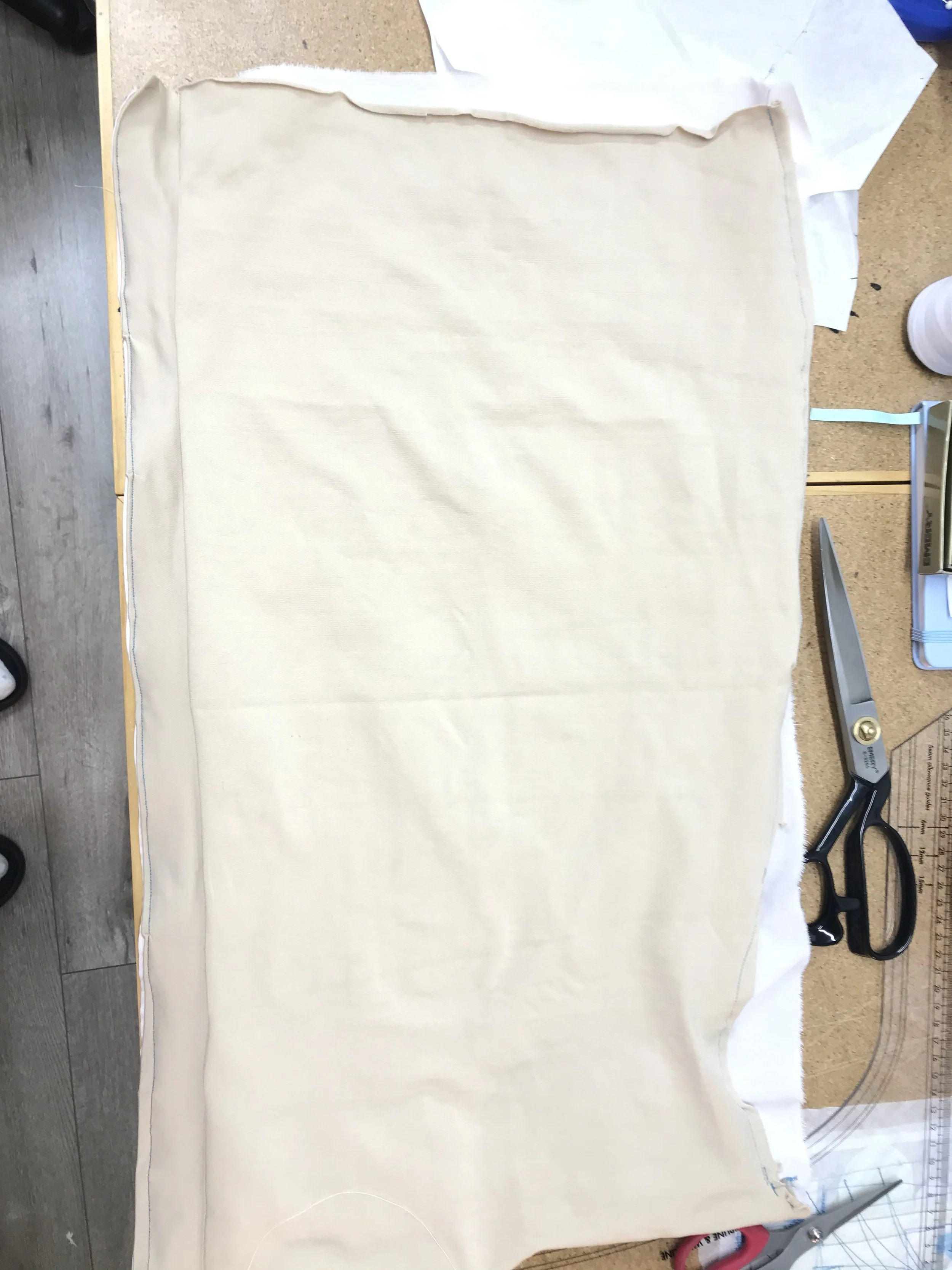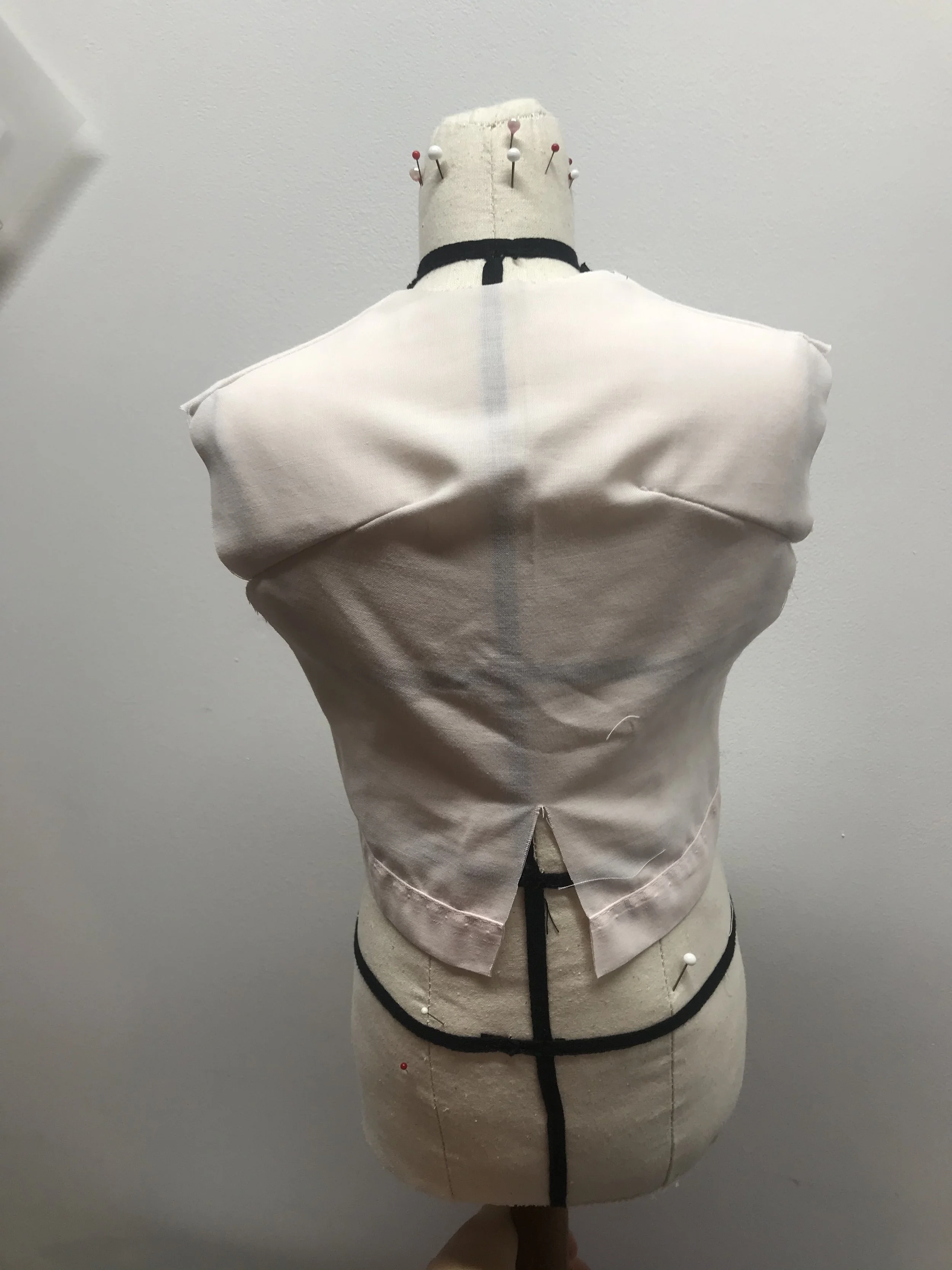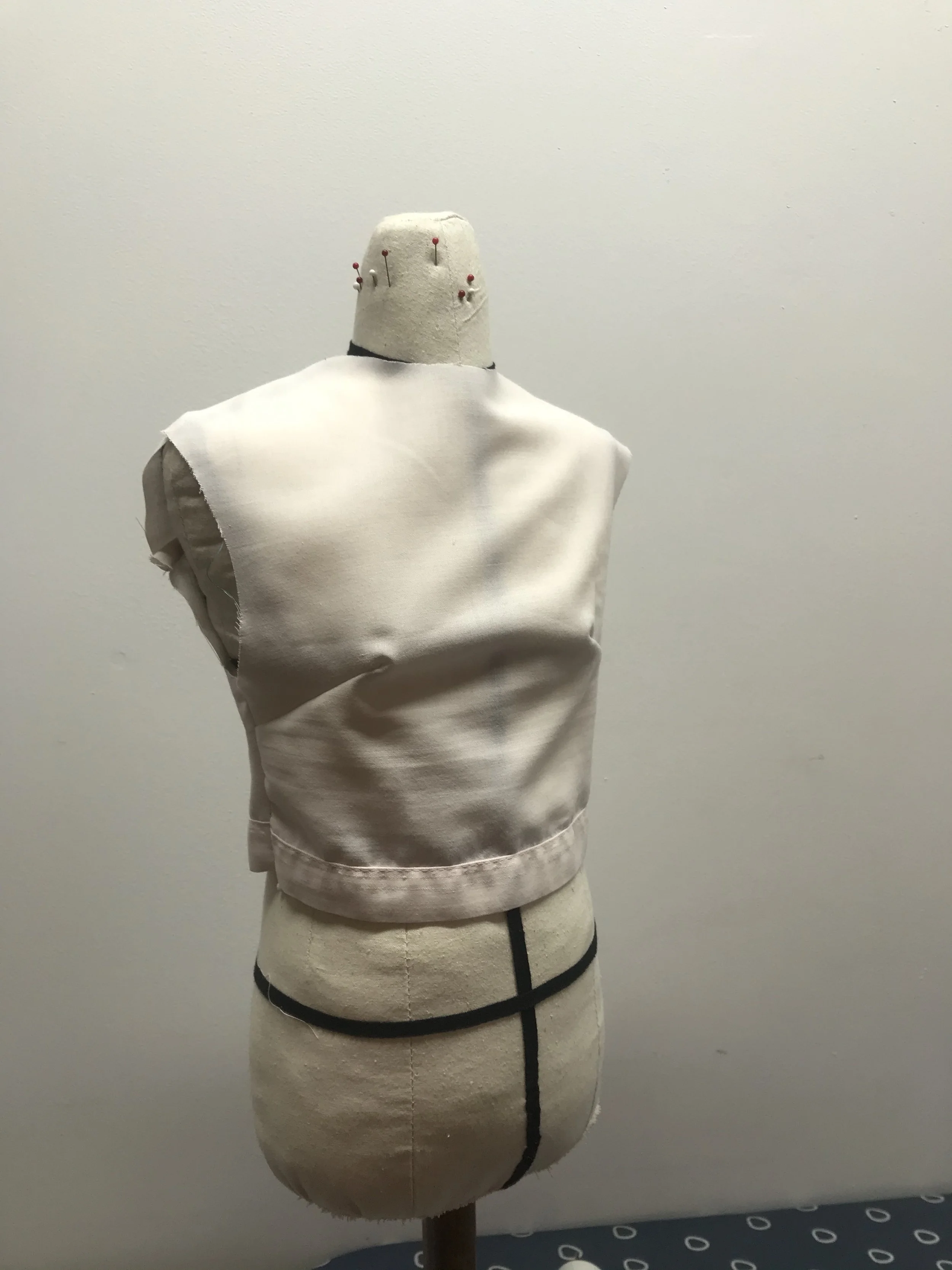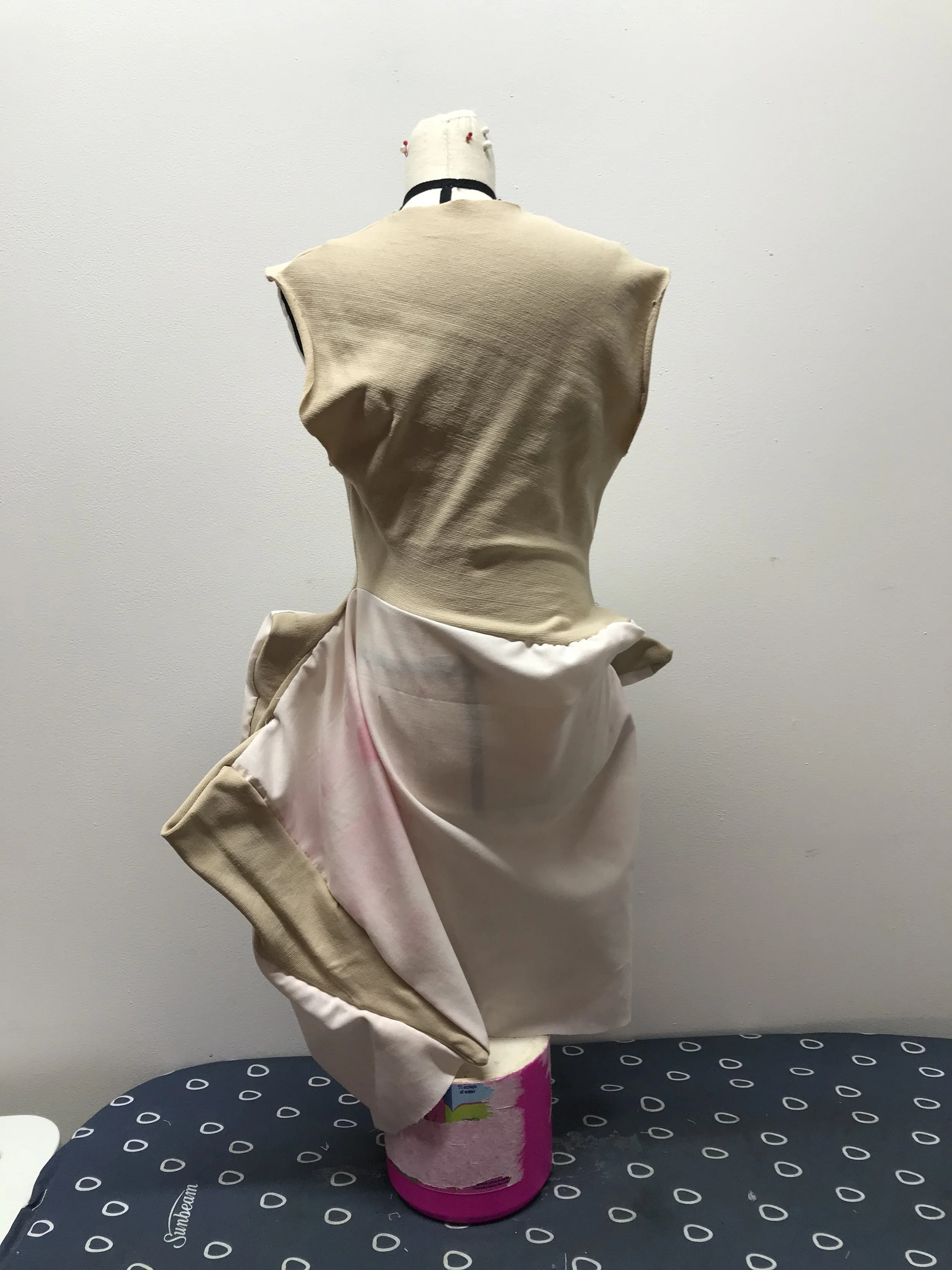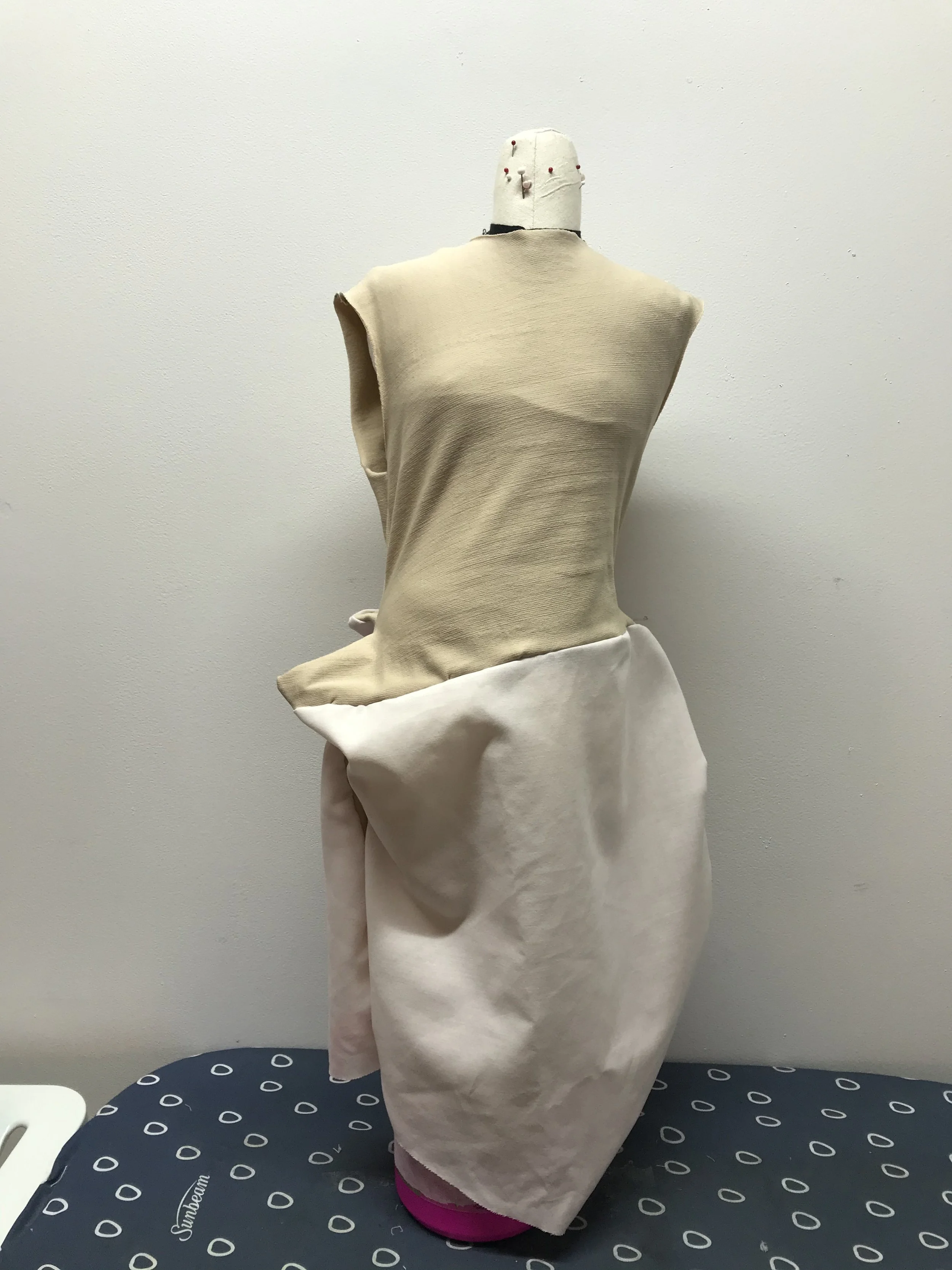 Subtraction cutting toile front: Stretch fabric allowed for a fitted top, whilst the cotton backing created a soft drape from the waist down.