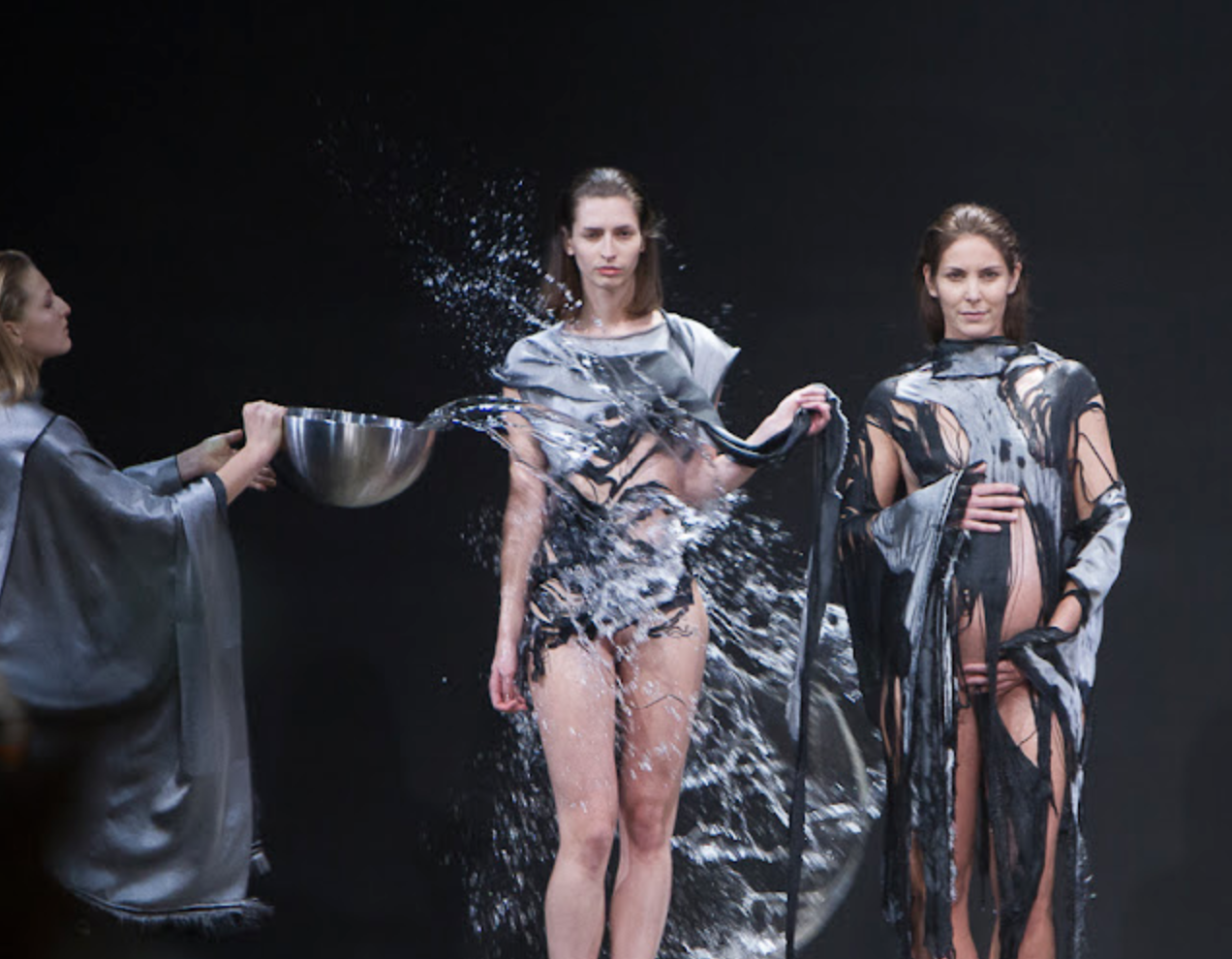 Chalayan and Montes exploring the materiality and performance aspect of dissolvable fusing. Activating the performance in different ways creates a drastic ambience change and offers the audience a transformation that requires an ephemeral experience.