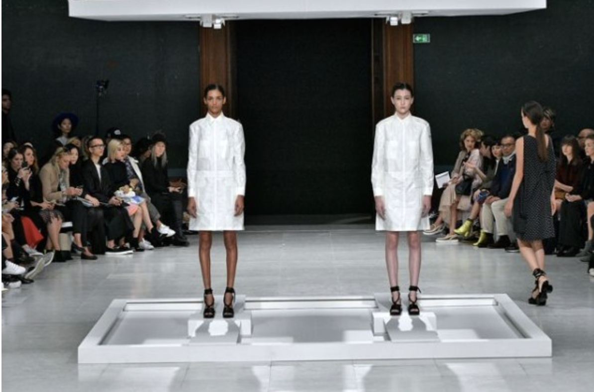 Hussein Chalayan SS16: Dissolvable collared dress turned lace bodycon dress